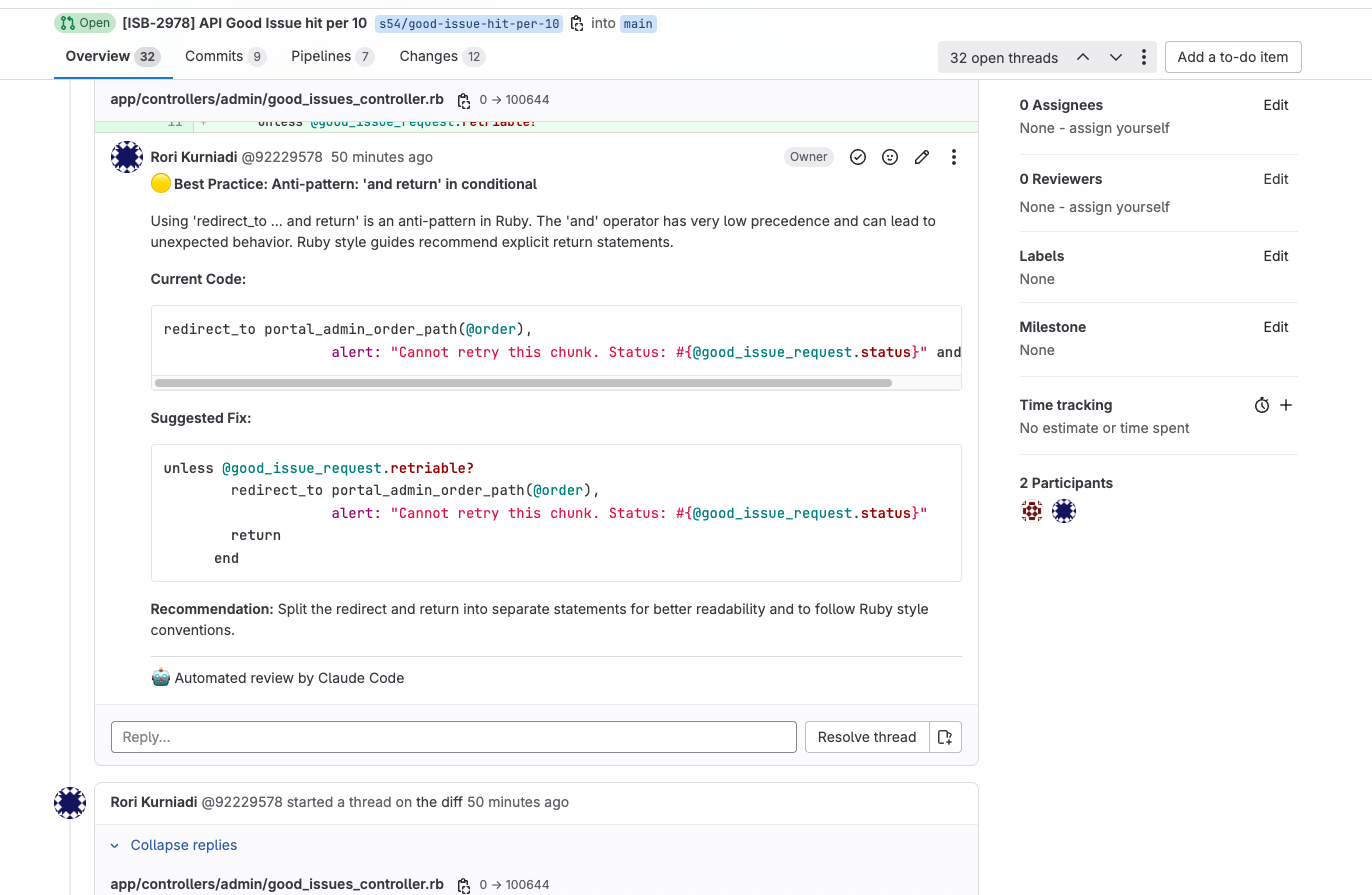 Initially, the system didn’t support reviewing the second, third, or subsequent MR iterations. It would treat each new commit as a fresh PR and re-review everything.